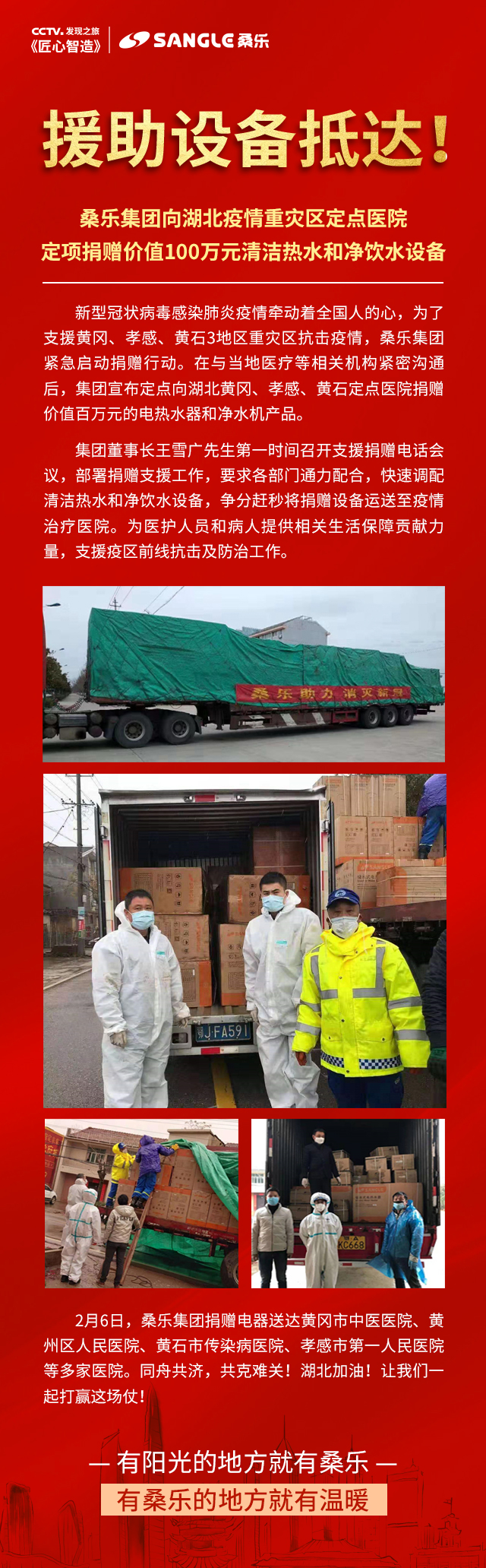 桑樂集團(tuán)定向捐贈百萬元電熱水器凈水機(jī)支援湖北抗擊疫情